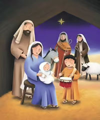 David stepped closer to Mary, Joseph, and their son. Baby Jesus smiled at David, reached out, and patted his drum.