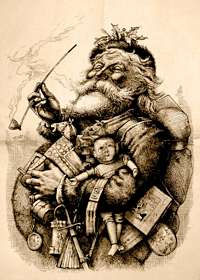 On January 1st 1881, Harper's Weekly published Nast's most famous image of Santa, complete with a big red belly, an arm full of toys and smoking a pipe!
